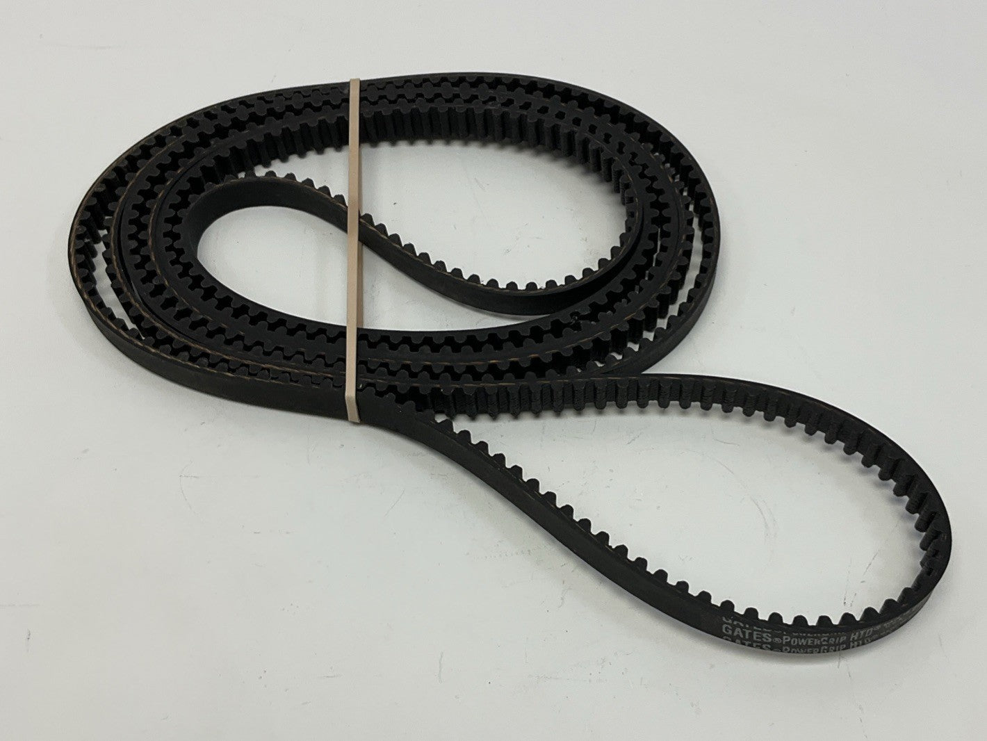 Synchronous belt, timing belt, toothed belt, or cogged belt, is a belt with teeth on the inner surface designed to with matched toothed pulleys.  These belts are efficient, long lasting and can withstand shock loads.
