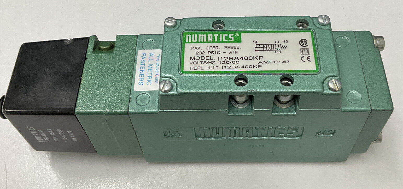 The Numatics I12BA400KP valve features a 110/120 VAC solenoid coil designed for efficient and reliable actuation in pneumatic systems. This coil delivers consistent electromagnetic performance to ensure precise valve control, optimizing system responsiveness and operational stability. Built for durability, it withstands demanding industrial conditions while facilitating easy integration and maintenance in automated applications.